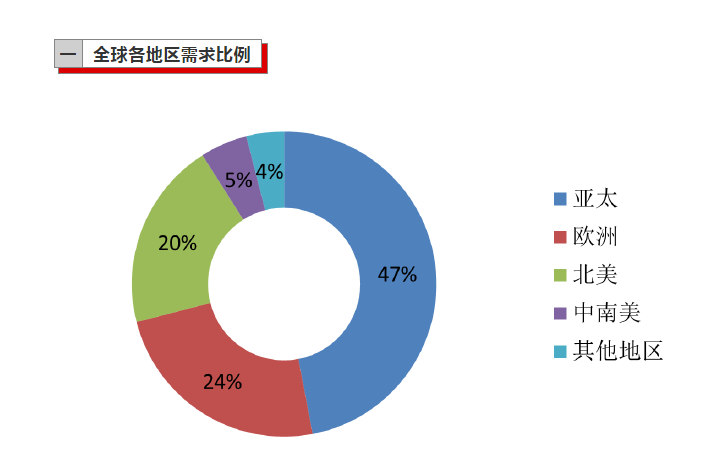 1.全球各地?zé)崛勰z需求比例