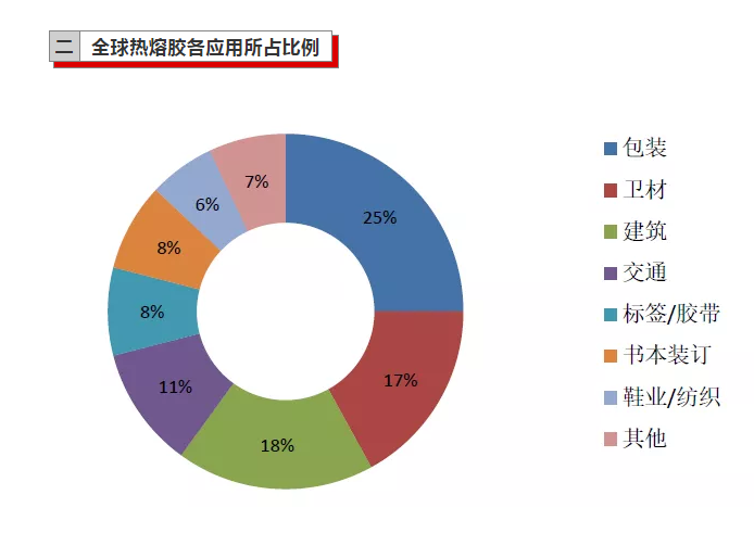 2.全球熱熔膠各應(yīng)用所占比例